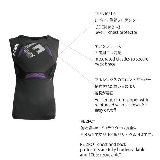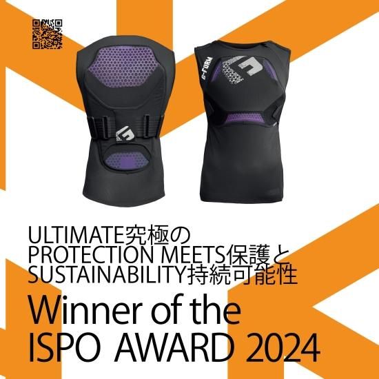 ISPOアワード審査員のコメント 「この背中と胸のプロテクターは、生分解性パッドだけでなく、よく考えられた調整機能や着脱の際の扱いやすさも際立っています。」